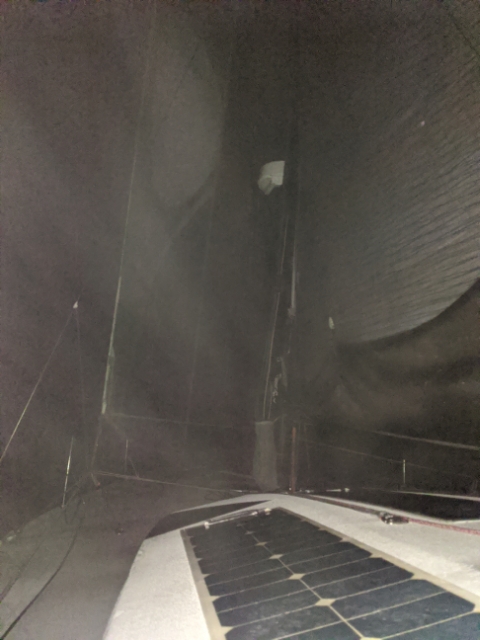 So, all is well aboard Kite though the crew look a bit haggard. At least we’ll have a colorful finish with our bright orange storm jib up.