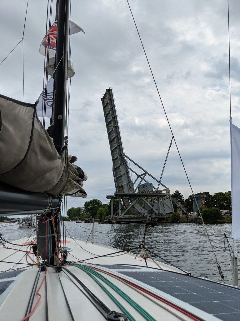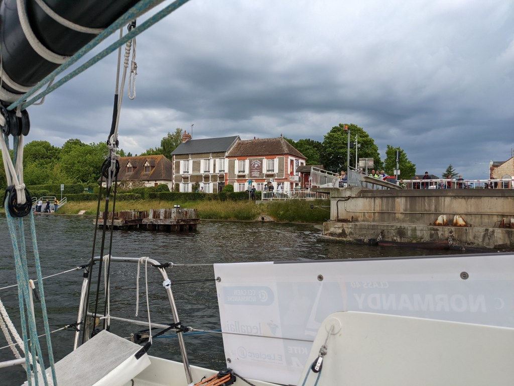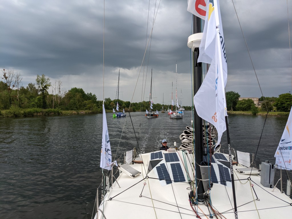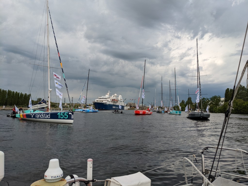 Sunday morning saw the procession out of the harbor and north through the canal to the start of the Normandy Channel Race. Here are a few photos: