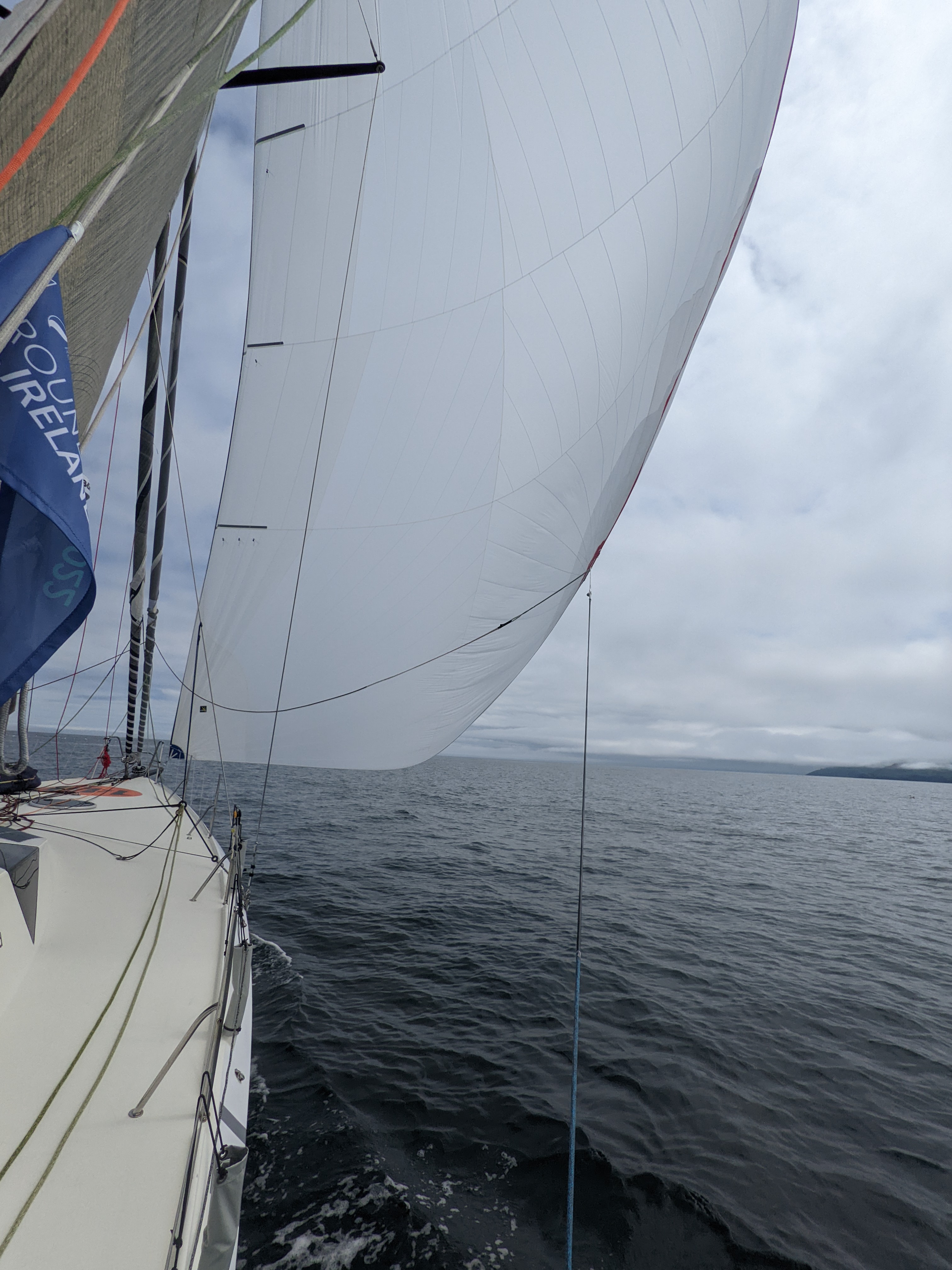 We have rounded Rathlin Island and are now heading south. We had a welcome from hundreds of mers and gannets and quite a few puffins. The scenery up here is lovely and it would be nice to stay, but we’re were quite happy with the 5 kts of current pushing us south east in the light winds.