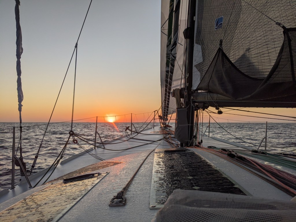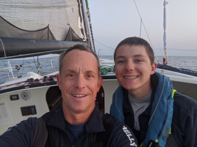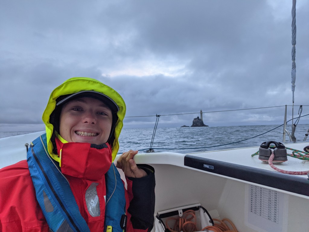Leaving for the start of the Normandy Channel RaceSmooth sailing on the SolentDolphins near Land’s EndTuskar Rock is in sightSunset in the Irish SeaRounding FastnetRounding FastnetRooster tail — 16 knots of boat speedMaking miles towards the ScillysApproaching Wolf RockMoonriseSunrise near GuernseyCalm conditions near GuernseyNearly there, and with bare feet tooFinished! And now for the quiche . . .
