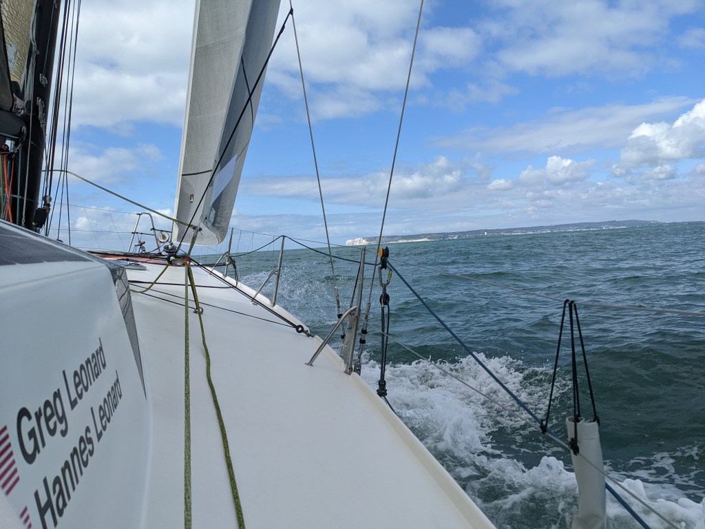 Photo by John GreenPhoto by Andrew BedwellPhoto by John GreenGreg and Hannes shortly before their departure from Hamble for the start of the 2020 Normandy Channel RaceSunset in HambleHappy racers in the SolentIn the Needles Channel on the first day of the Normandy Channel RaceUnder the storm jib on the final day of the racePhoto by Merfyn OwenTied up at the dock.